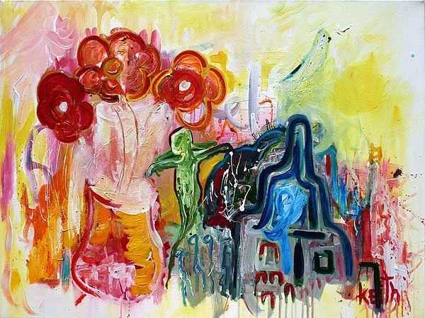 48 x 36", acrylic, oil, pastel on canvas
